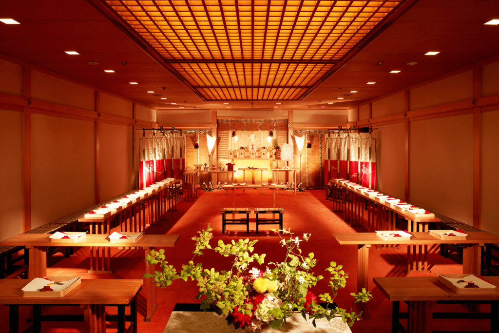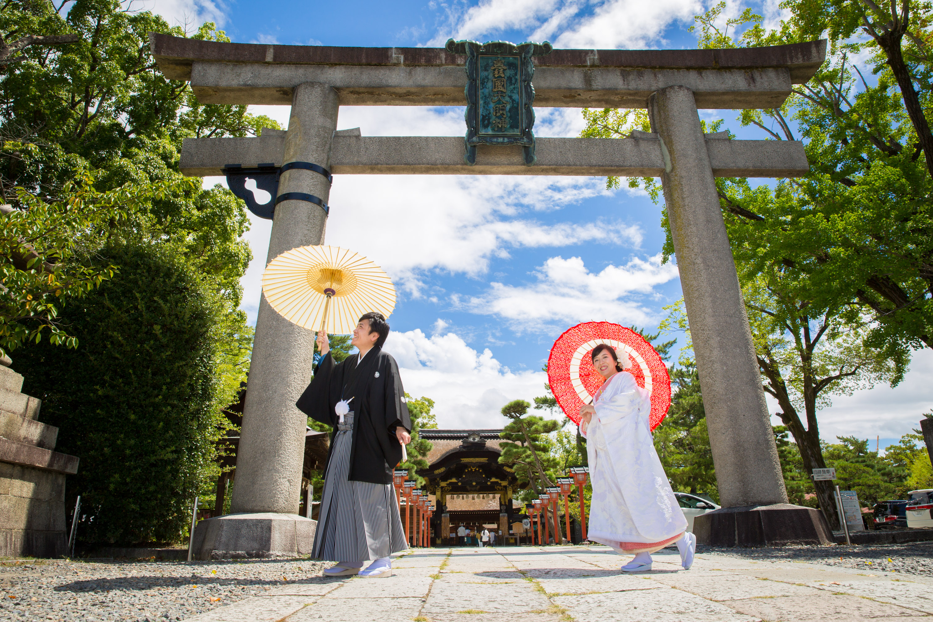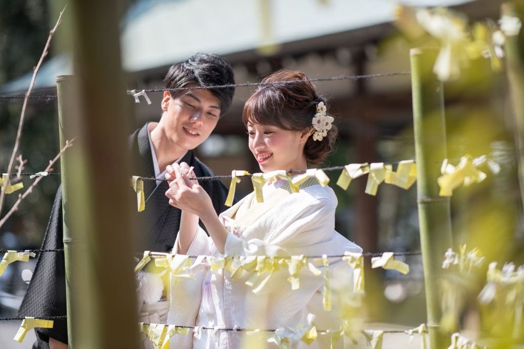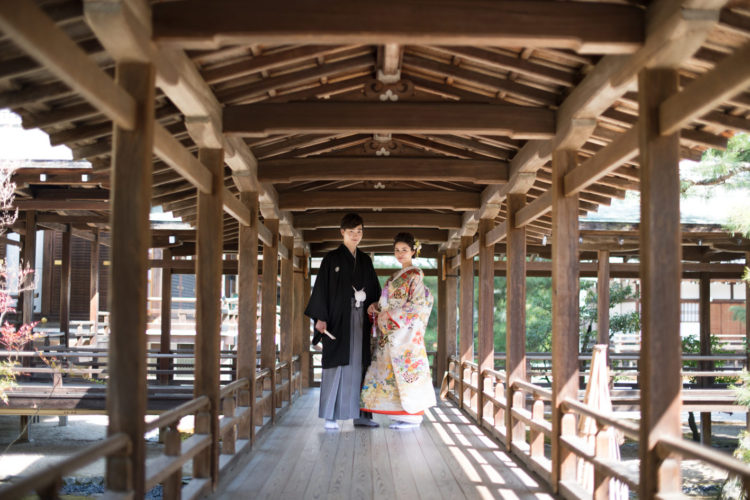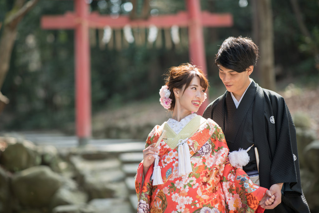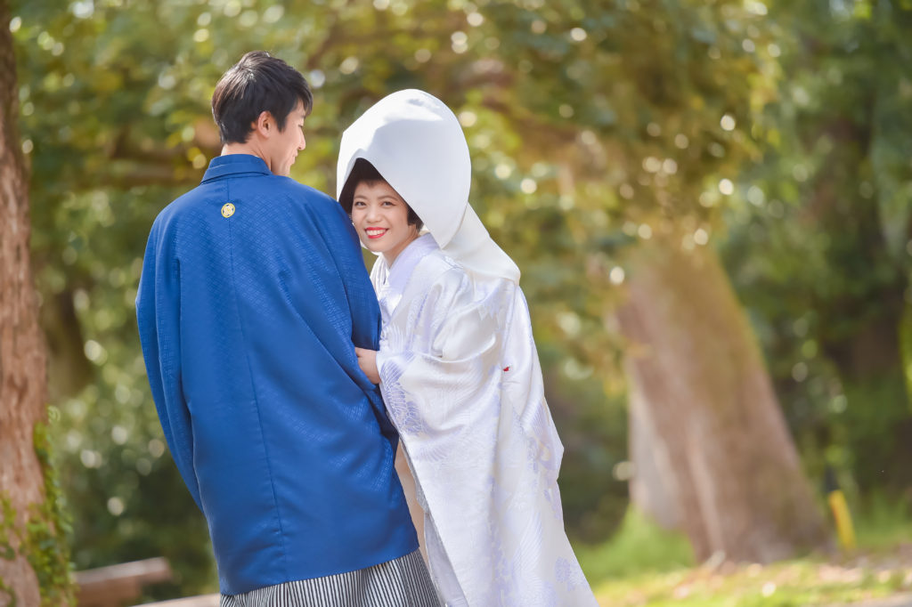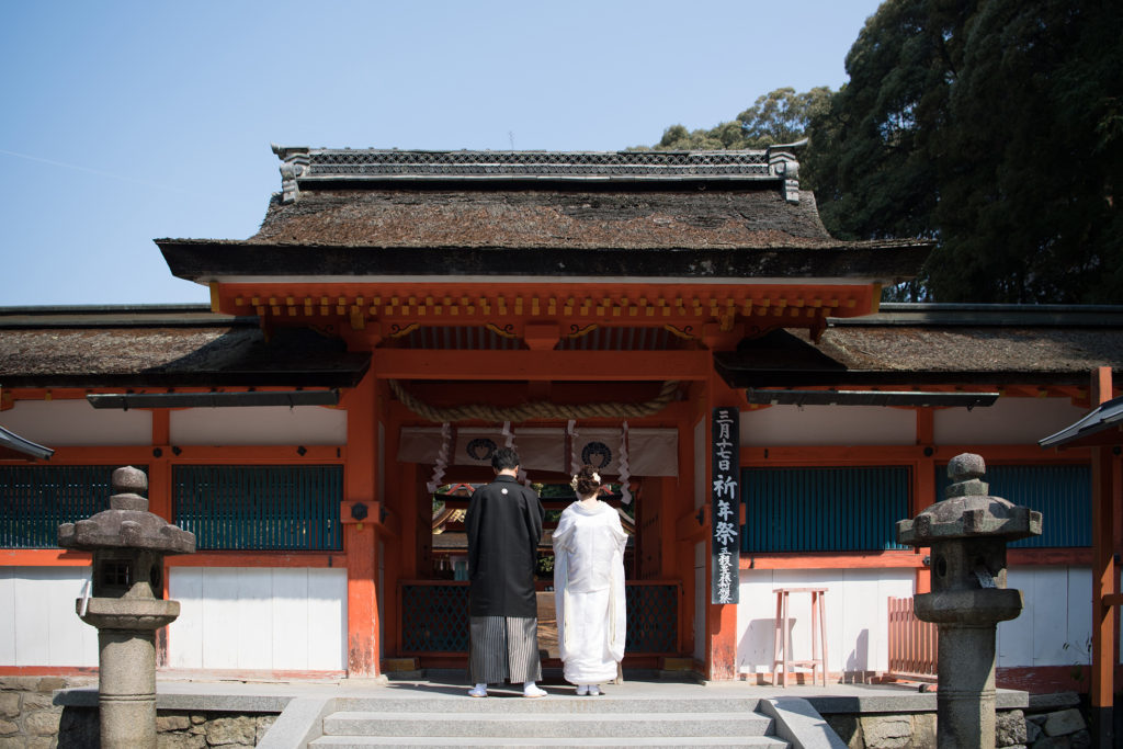 晴れの日に相応しい荘厳な境内。白無垢、色打掛どちらも映えるロケーションです。