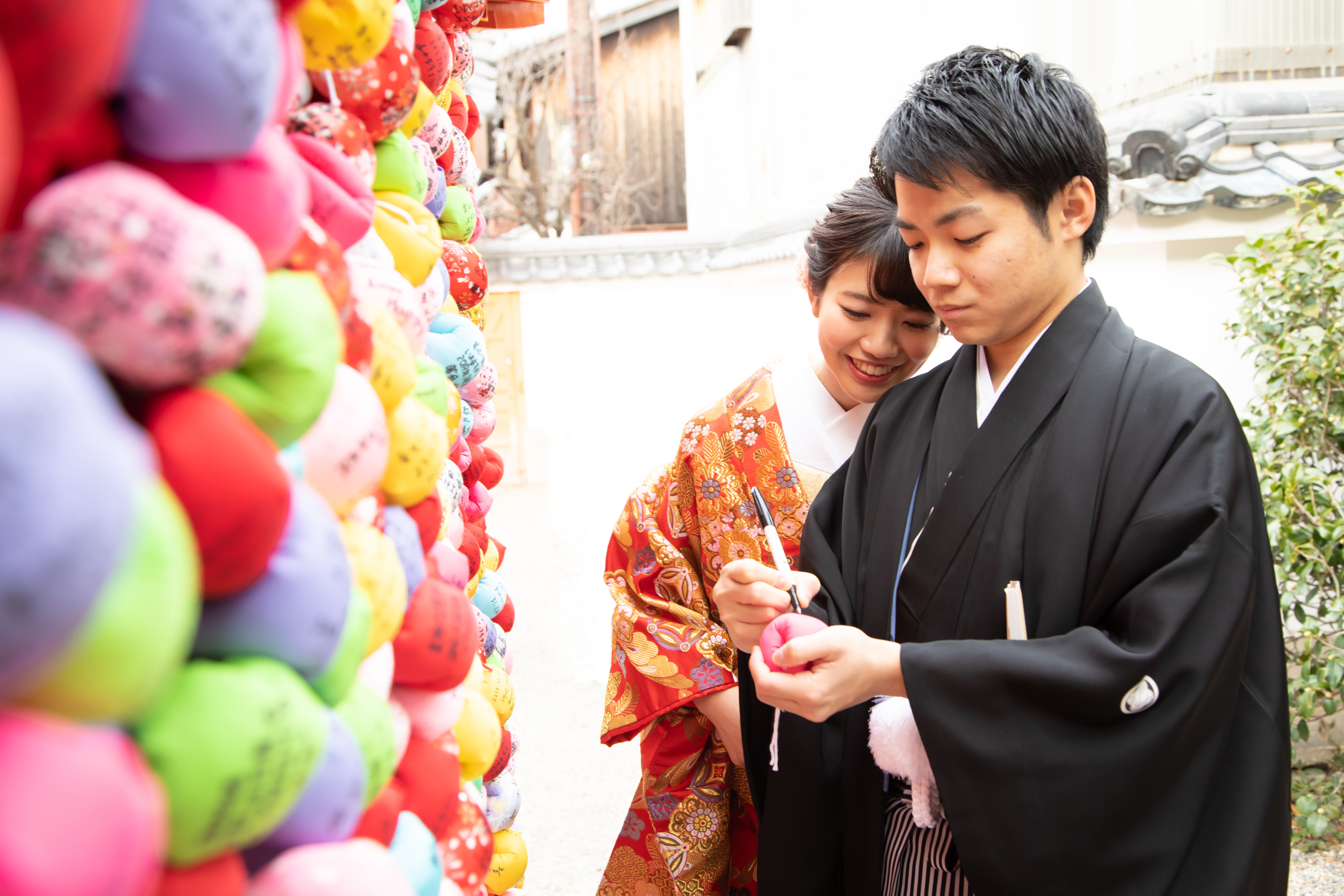 各ロケーション場所には、それぞれ欠かせないポイントがあるのです。 吉田神社では酒樽前でのショットは...