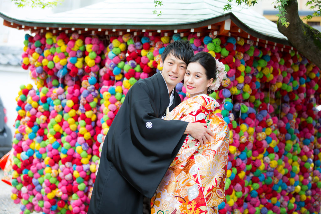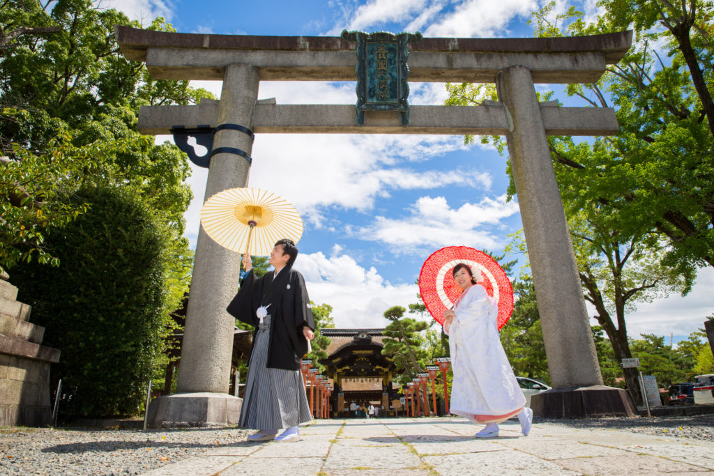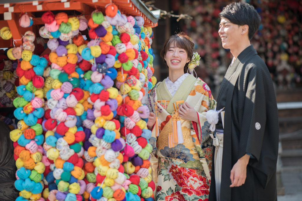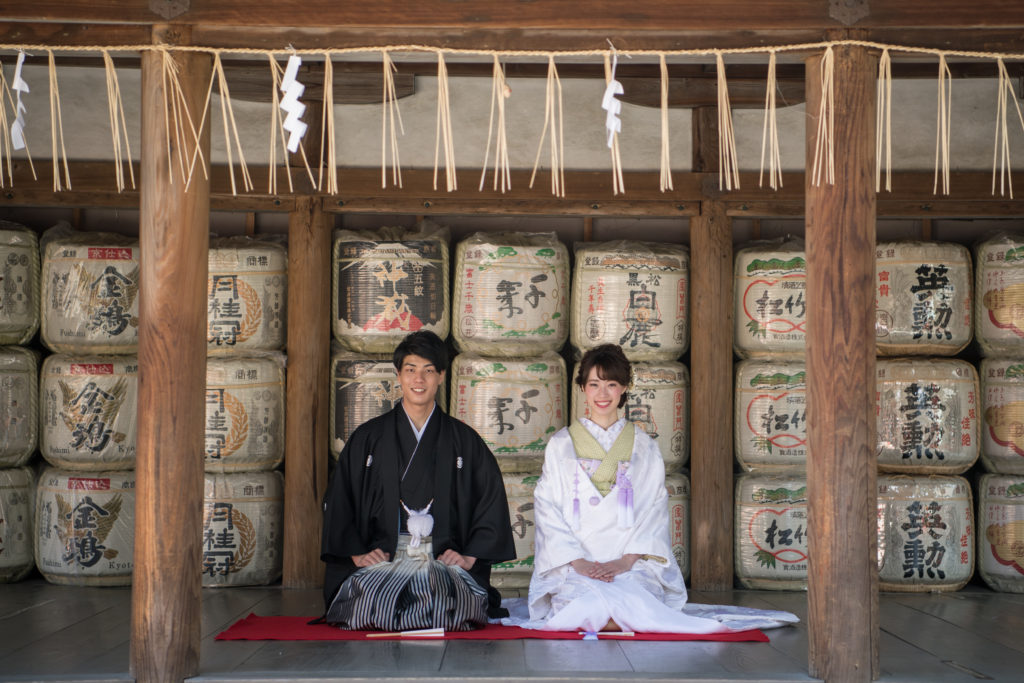 各ロケーション場所には、それぞれ欠かせないポイントがあるのです。 吉田神社では酒樽前でのショットは必須!