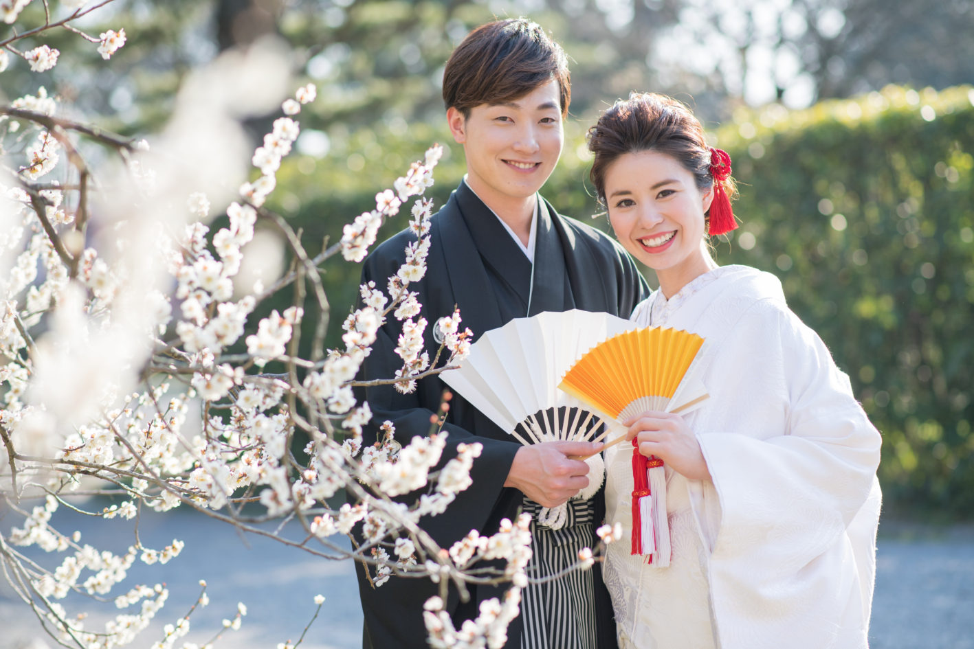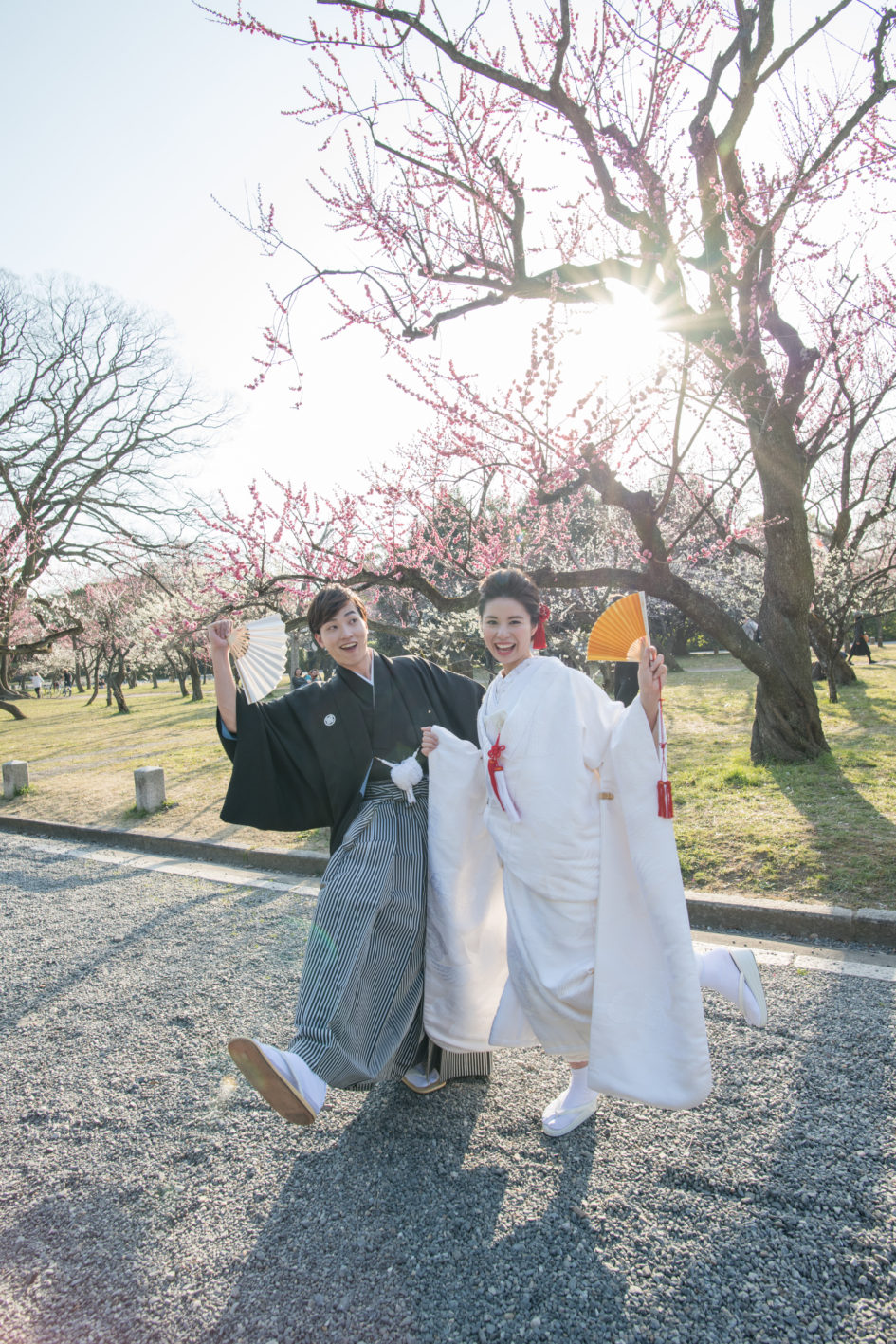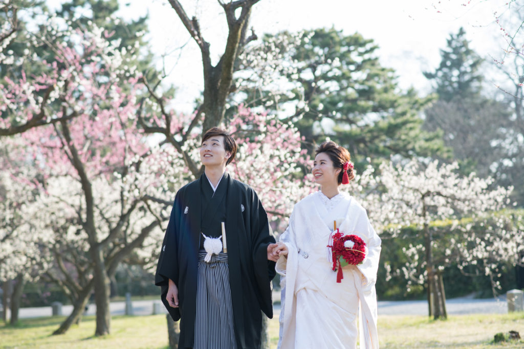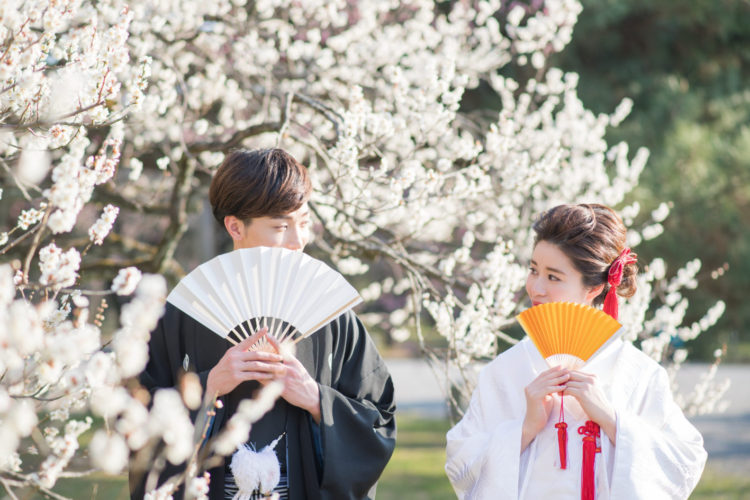 咲き誇る満開の梅を眺めながら、お二人で楽しまれている様子を切り取りました。