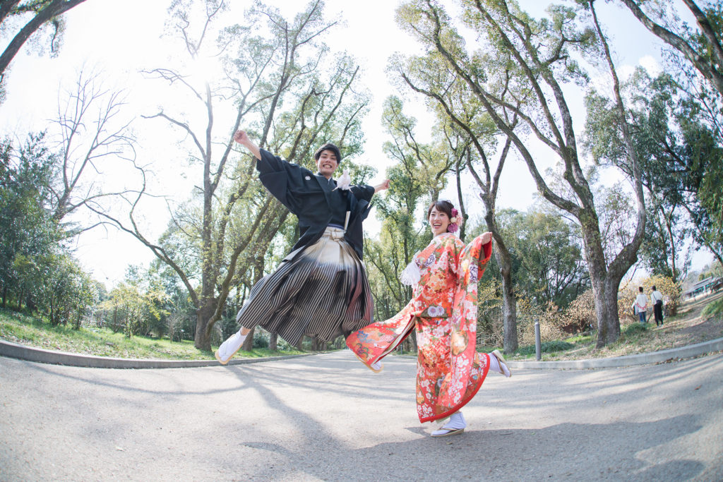和装でジャンプ!もお二人らしい1枚。